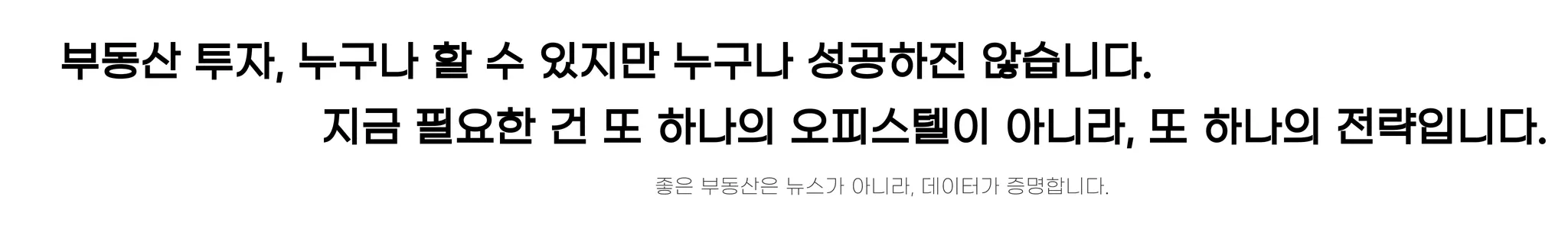 "오피스텔이 좋다", "상가가 유망하다", "아파트 가격이 오른다"와 같은 단편적인 정보나 소식은 실제 투자의 성패와 본질적으로 큰 관련이 없습니다.부동산 투자의 진정한