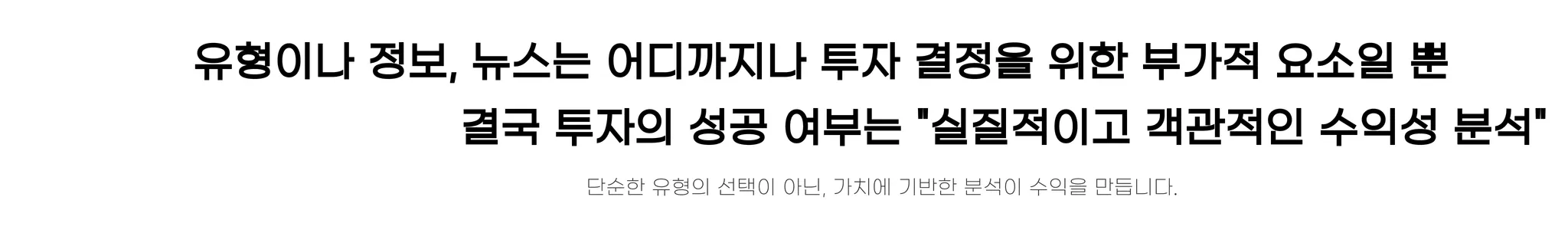 "오피스텔이 좋다", "상가가 유망하다", "아파트 가격이 오른다"와 같은 단편적인 정보나 소식은 실제 투자의 성패와 본질적으로 큰 관련이 없습니다.