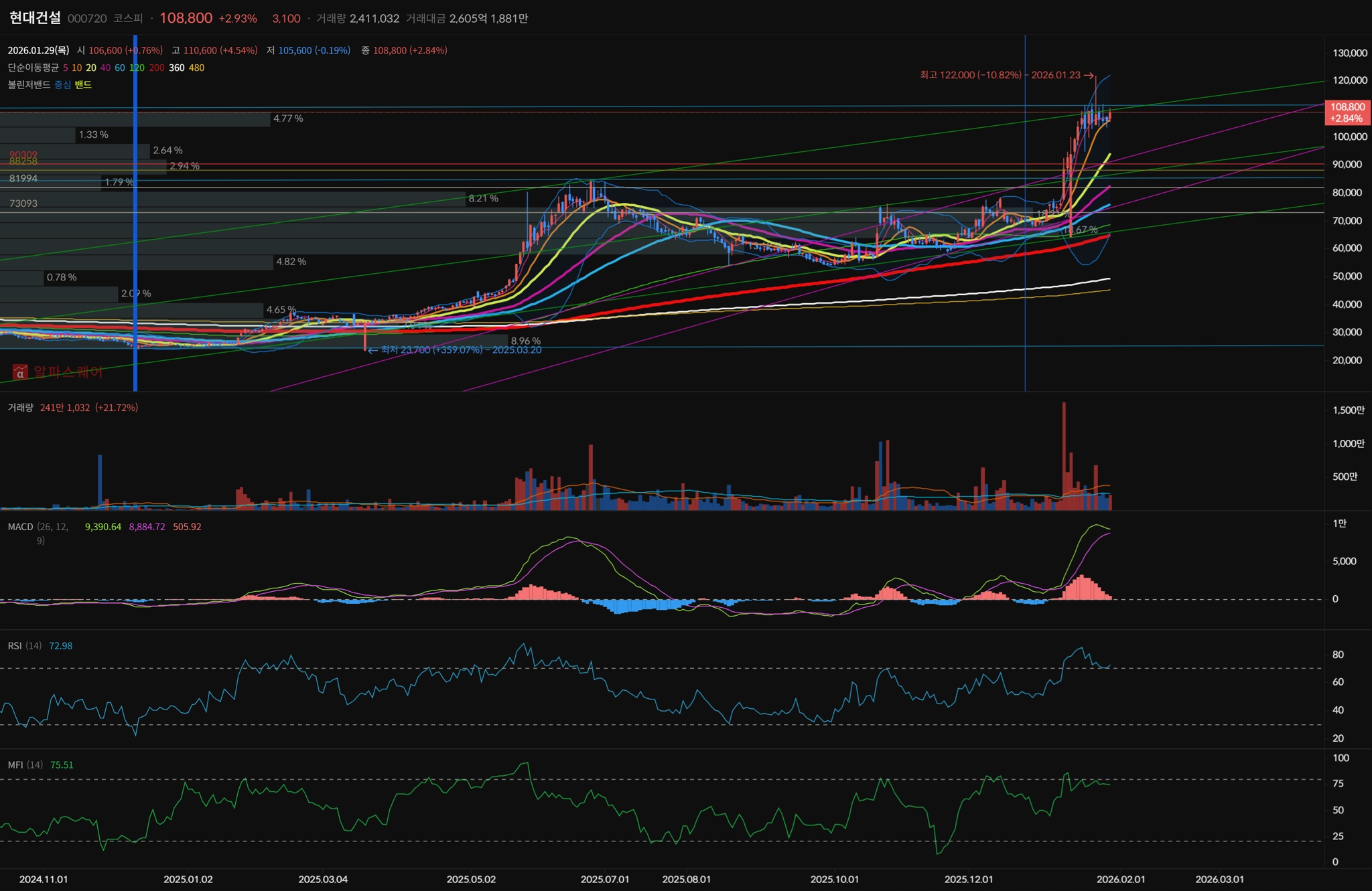 1월 29일 종가 기준 108,800원 1월 11일 기준 현재 28%