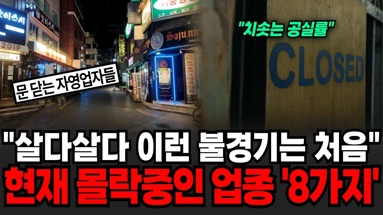 영상은 추가로 “스크린골프(코로나 특수 후 거품 붕괴)”도 언급하지만, “몰락 업종 8가지”에는 주로 위 항목들이 묶여 제시됩니다.